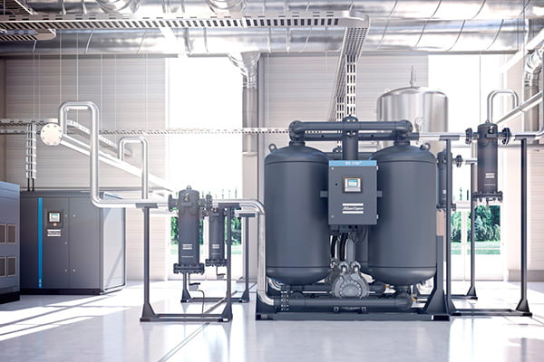 Constan de dos o tres torres rellenas con desecante, por el cual pasa el aire comprimido y este absorbe la humedad.